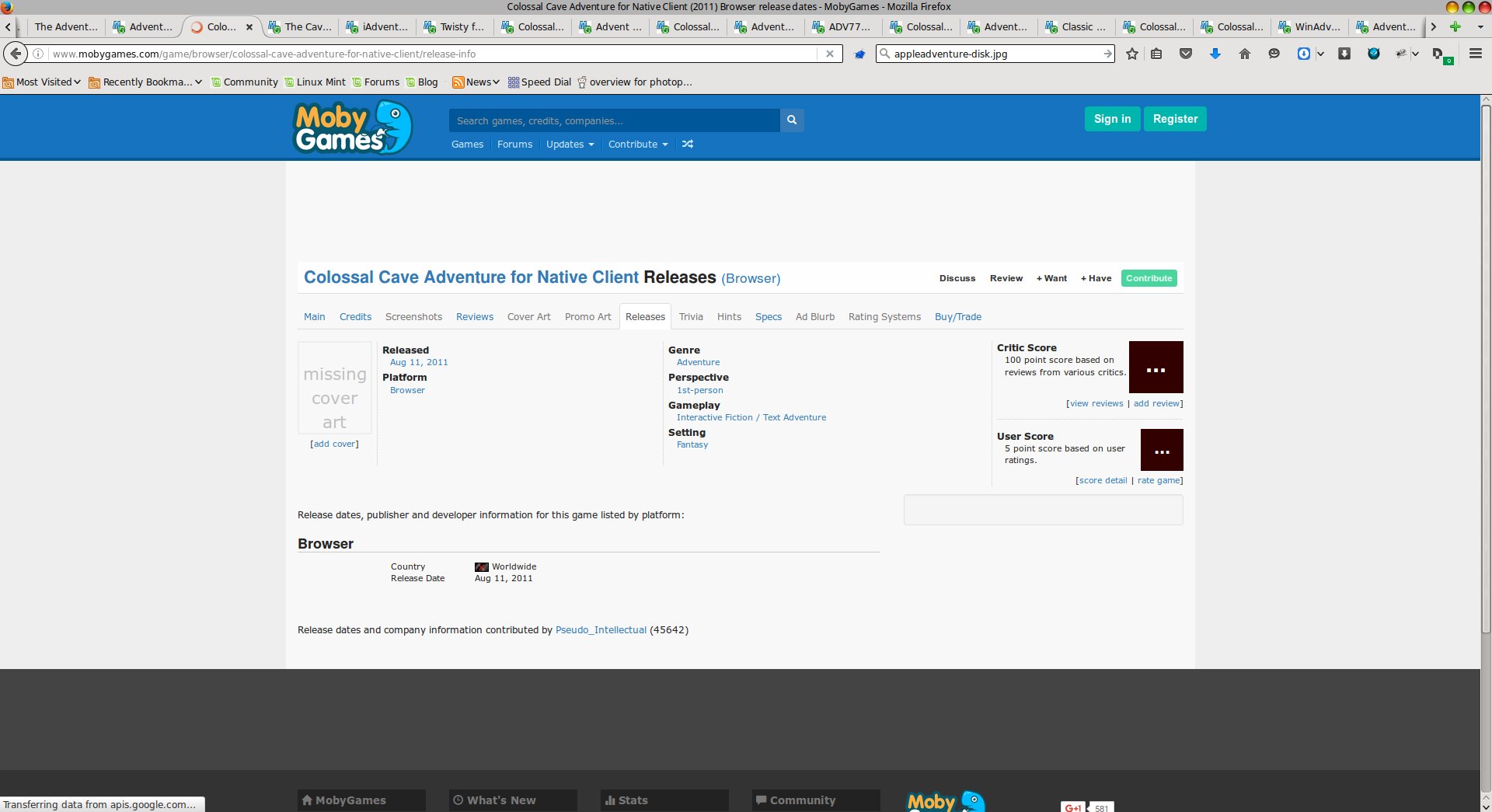 | Colossal Cave Advent..> | 2023-07-20 18:55 | - | ||